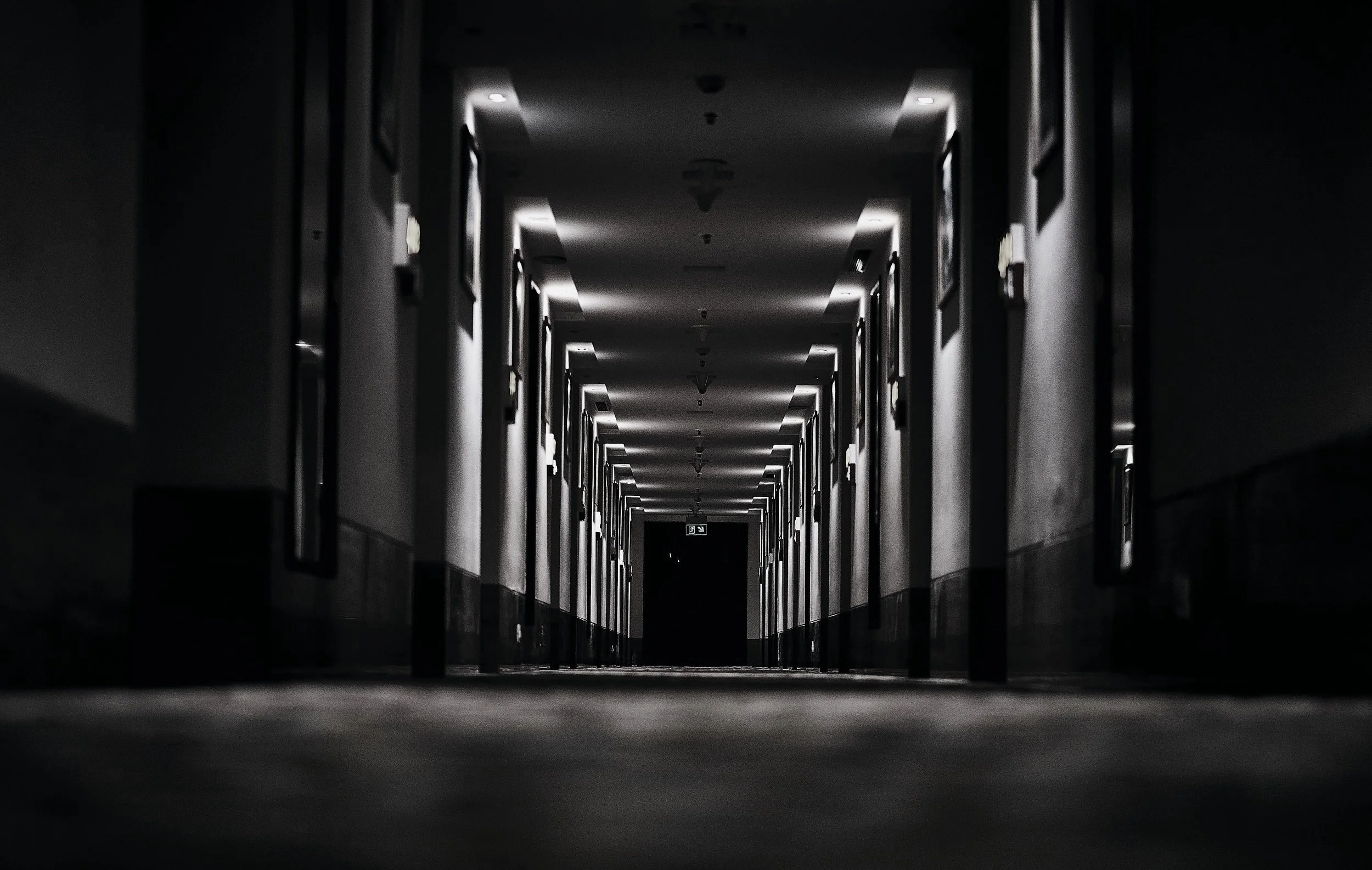 Our character has managed to find themselves out of the basement and now stands in the midst of a long, daunting hallway. Attached to it are a few rooms that signify pivotal moments that defined their being. With hesitation, our character proceeds down the corridor.